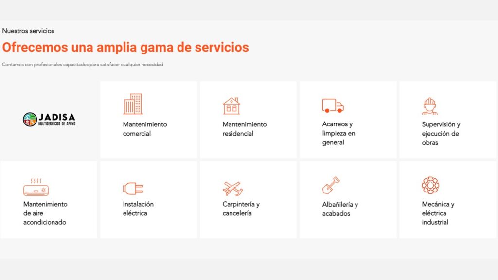 - Trabajos de mampostería, albañilería, tablaroca, cancelería, herrería, instalación hidrosanitaria, acarreos y limpieza, aire acondicionado, entre otros.